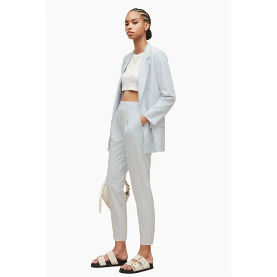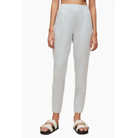 Featuring a pull-over design, regular fit, ankle length, side pockets, pleat the the waist and back welt pockets, mid rise, tapered legs and unlined.