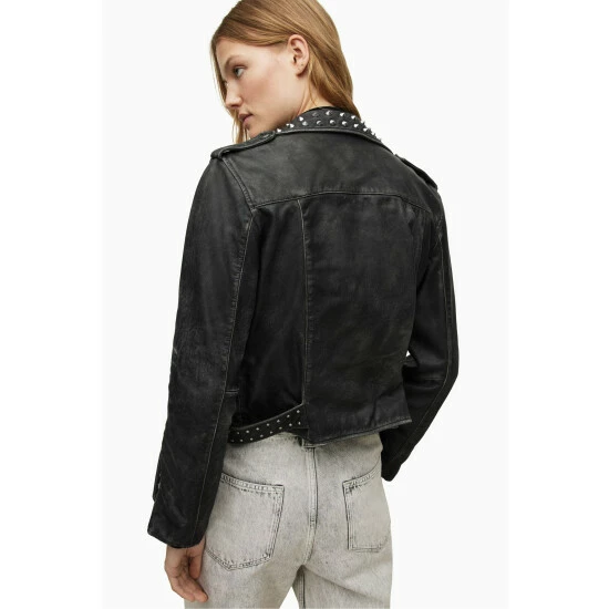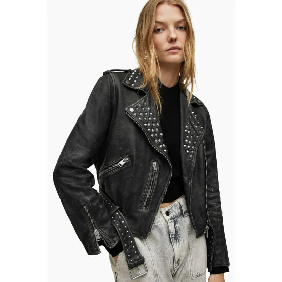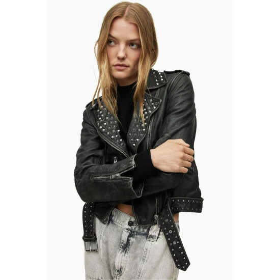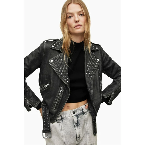 All Saints AllSaints Balfern Studded Black Biker Jacket