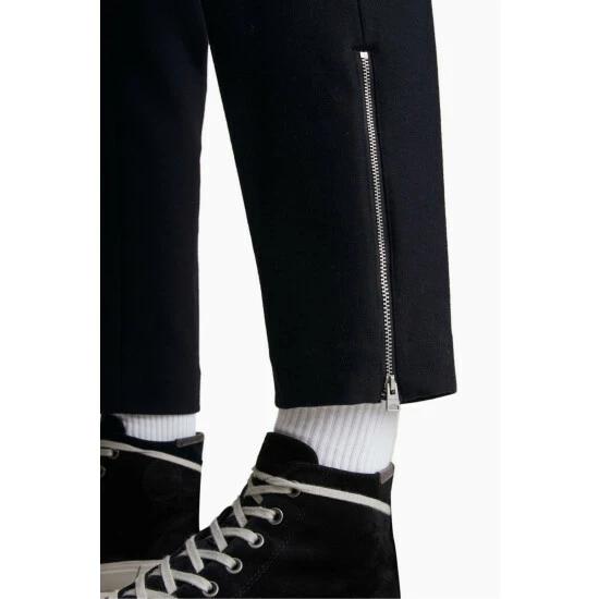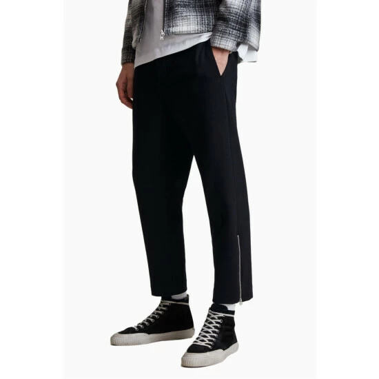 Featuring slim fit, cropped, back of waistband is elasticated, front of waistband is fixed, zip detail on hem, back pocket welts and in-seam side pockets.