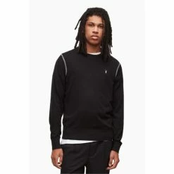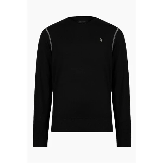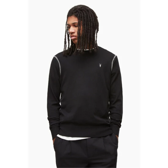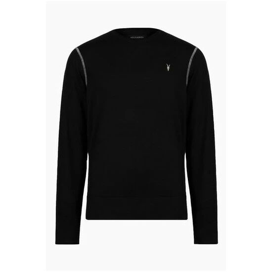 - AllSaints signature Ramskull embroidery. Contrasting cover stitch on the arm and shoulders. Ribbed cuffs and hem. Rolled collar trim.