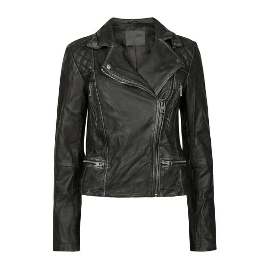 Metal hardware. Quilting to the shoulders. Creased finish. Due to the distressed nature each jacket will be unique. Delivered rolled for a unique creased finish. Regular fit.