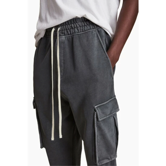 Featuring slim fit, regular, fadeout wash, self fabric elasticated waistband with drawcord, cargo pockets on side seams, front side pockets, back pockets and cargo pockets on side seams.
