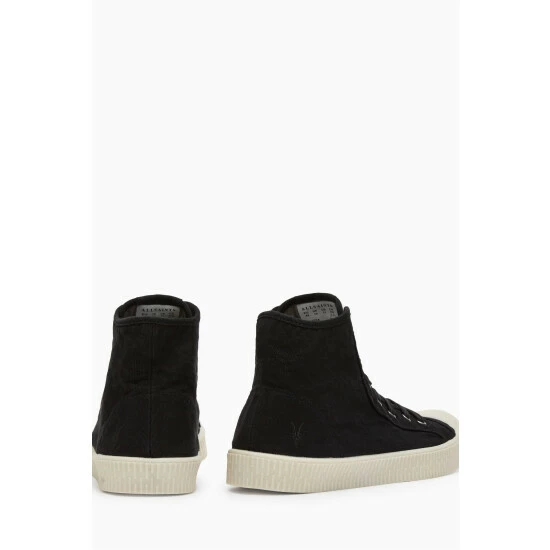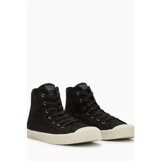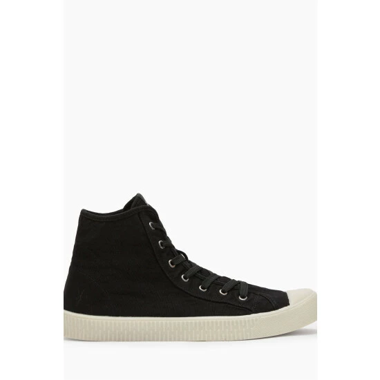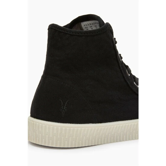 High Top. Lace up. Round toe. A military surplus inspired high top lace up boot with an injected rubber sole and ramskull embroidered heel. Ramskull embroidery in the heel.