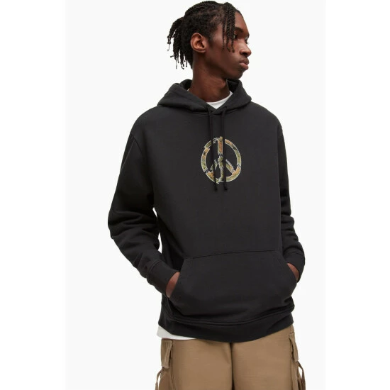 All Saints AllSaints Black Peacenik Hoody Relaxed Fit Long Sleeved Jumper