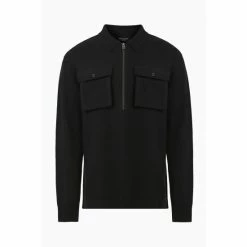 Featuring bellowed patch pockets on chest, Allsaints branded imitation horn buttons on pockets, AllSaints branded zipper, lightly overwashed yarn giving structure to the knit ribbed trims and external seam detail.