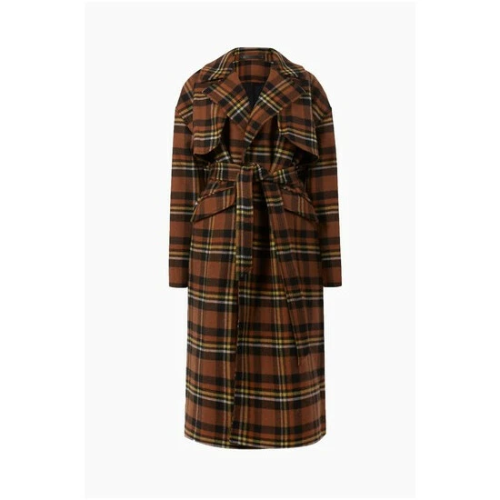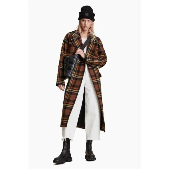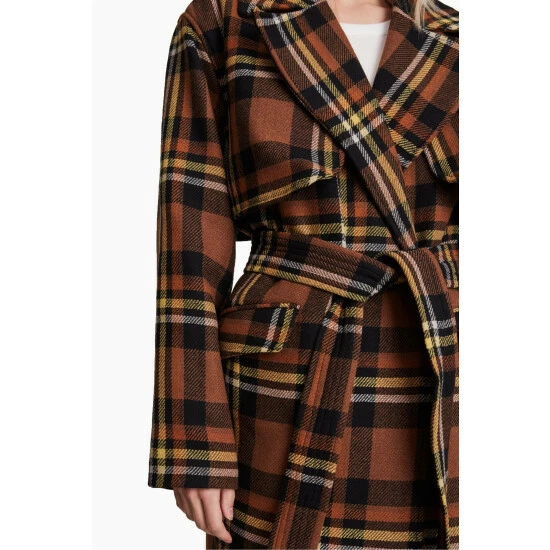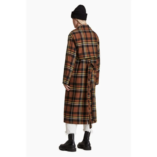 Featuring button closure, long sleeves, maxi length, detachable waist belt, collar, relaxed fit, check jacquard and AllSaints branded lining. Recycled fabrics produced in Heritage Manteco mill.