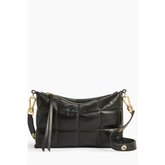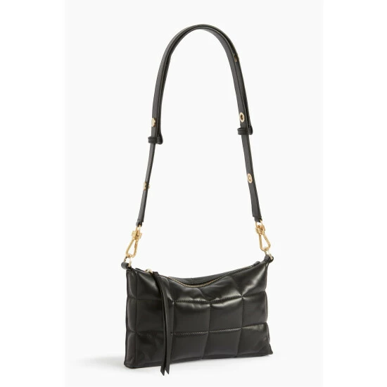 Featuring a zip closure, soft leather quilt bag, adjustable strap, one internal pocket and brass hardware. Strap length: 36-58cm. Height: 26cm. Width: 16cm. Depth: 3cm.