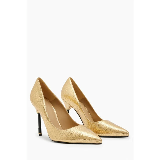 All Saints AllSaints Gold Nova Metallic Court Shoes