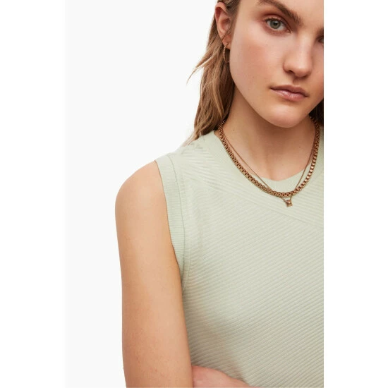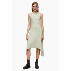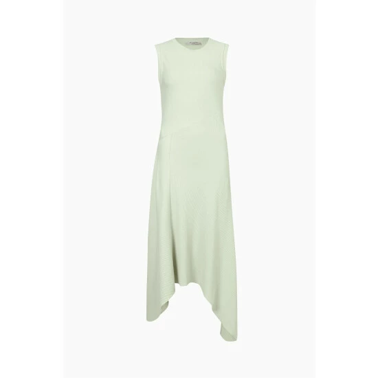 Featuring pull over, crew neck and sleeveless. The Gia dress is made from a ribbed jersey fabrication, and is panelled together with interesting seam lines creating an asymmetric hem and no pockets.
