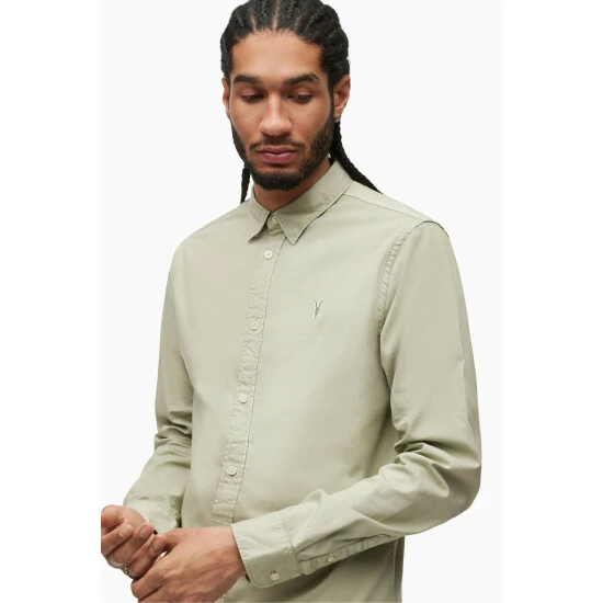 All Saints AllSaints Green Hawthorne Long Sleeve Shirt