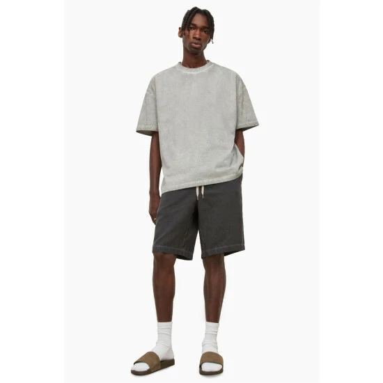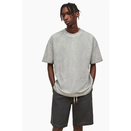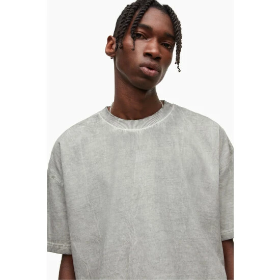 Designed with pull over, crew neckline, short sleeves. It is an oversize fit. Featuring, thicker rib neckhead, twin needle stitch on hem and cuffs, all over crinkle wash.