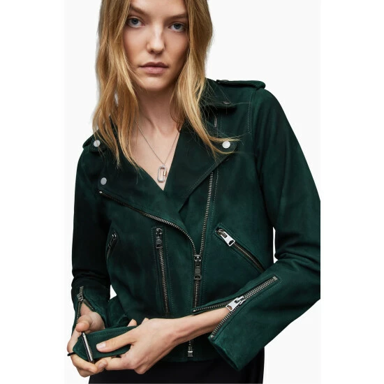 All Saints AllSaints Green Suede Balfern Jacket