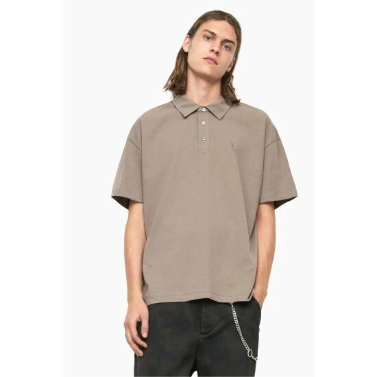 All Saints AllSaints Grey Lex Short Sleeve Polo Shirt
