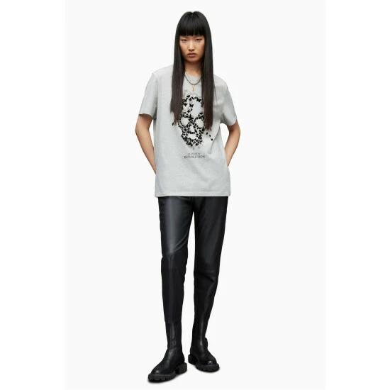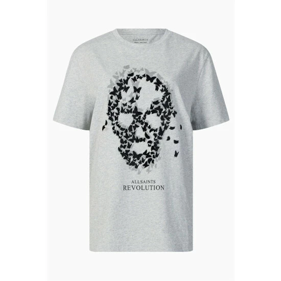 All Saints AllSaints Grey Omnia Skull Boyfriend T-Shirt