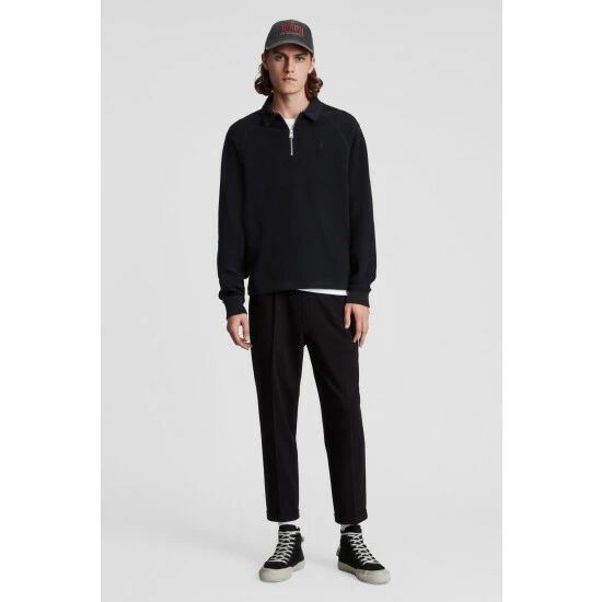 All Saints AllSaints Navy Blue Rafe Half Zip Polo Shirt