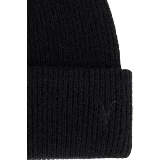 All Saints AllSaints Ramskull Embroidered Beanie Hat Black