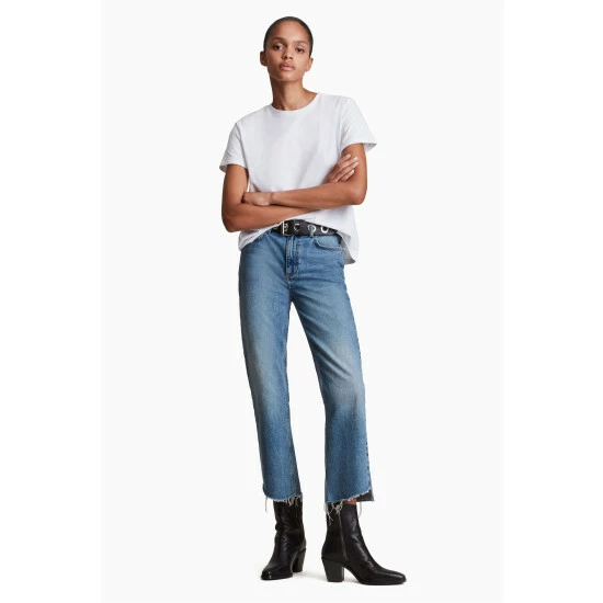 Pullover. Crew neck. Short sleeve. Relaxed fit. AllSaints embroidered Ramskull. ALLSAINTS cotton products support more sustainable cotton farming. Better Cotton is sourced via a system of Mass Balance.