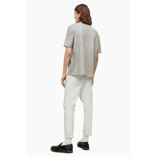 AllSaints jeans’ is a cropped taper and vintagr wash inspired jeans. A tapered fit. It features button closure, subtle whiskering details to the rise and fading through the leg, Jacron patch and Jacron washer to front button, and five pocket styling. It is mid rise and a straight leg jeans.