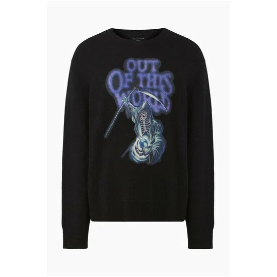 Featuring spongy, textured wool base with graphic motif printed on front graphic inspired by retro metal tees and album covers ribbed trims.